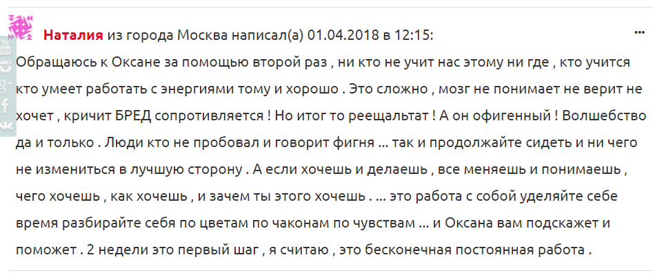 Вот что недавно написала моя клиентка: